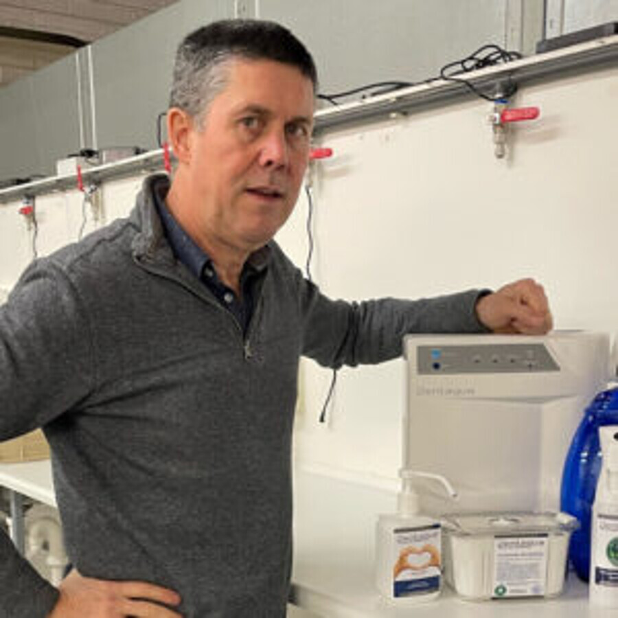 Diretor de Operações Kevin Keane e o dispositivo Dentaqua. (Imagem: Dentaqua)