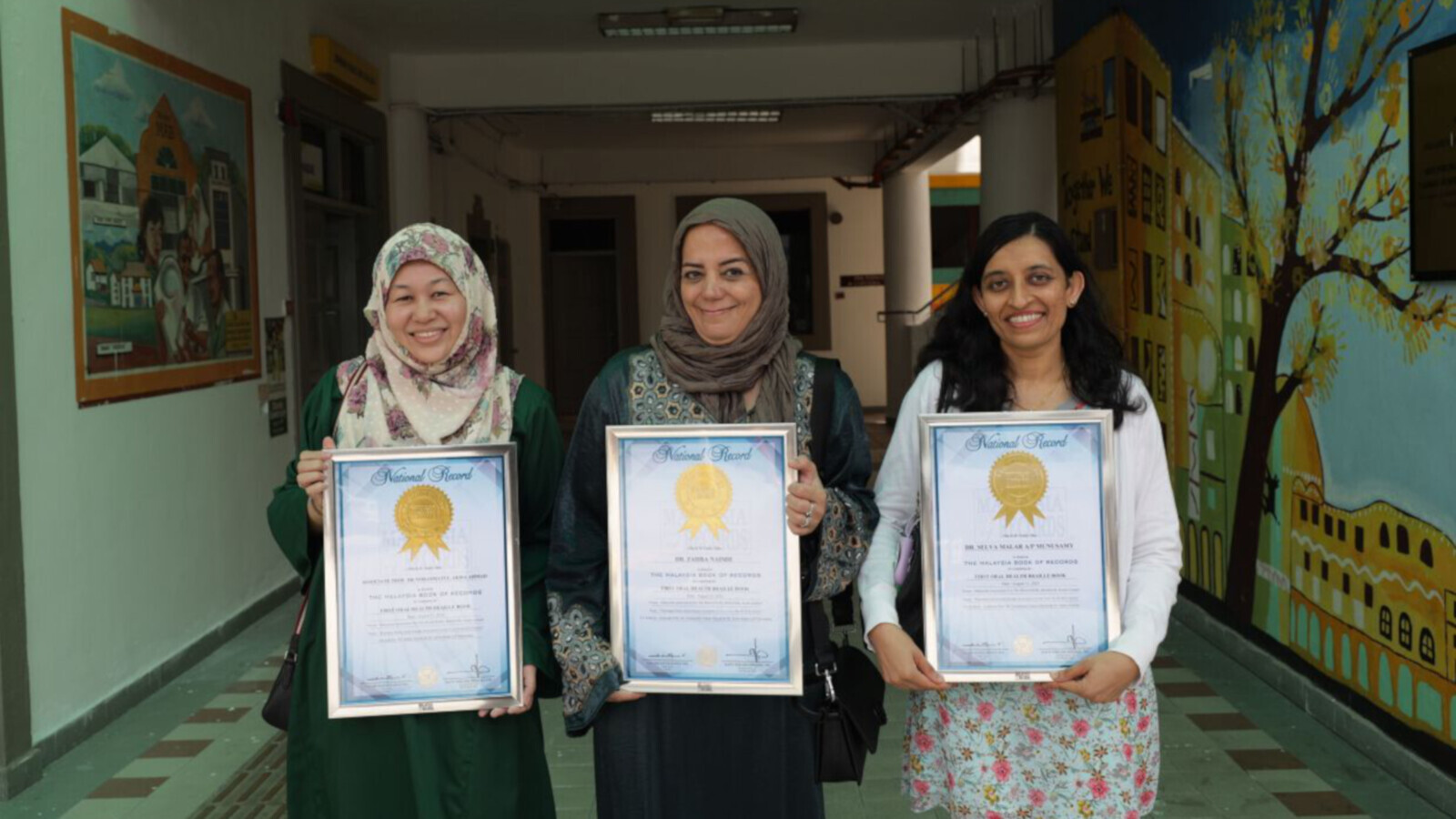 As autoras do primeiro livro em Braille sobre saúde bucal publicado na Malásia (a partir da esquerda): Dras. Norasmatul Akma Ahmad, Zahra Naimie e Selva Malar Munusamy. (Imagem: Nem Nazrin Nordin)